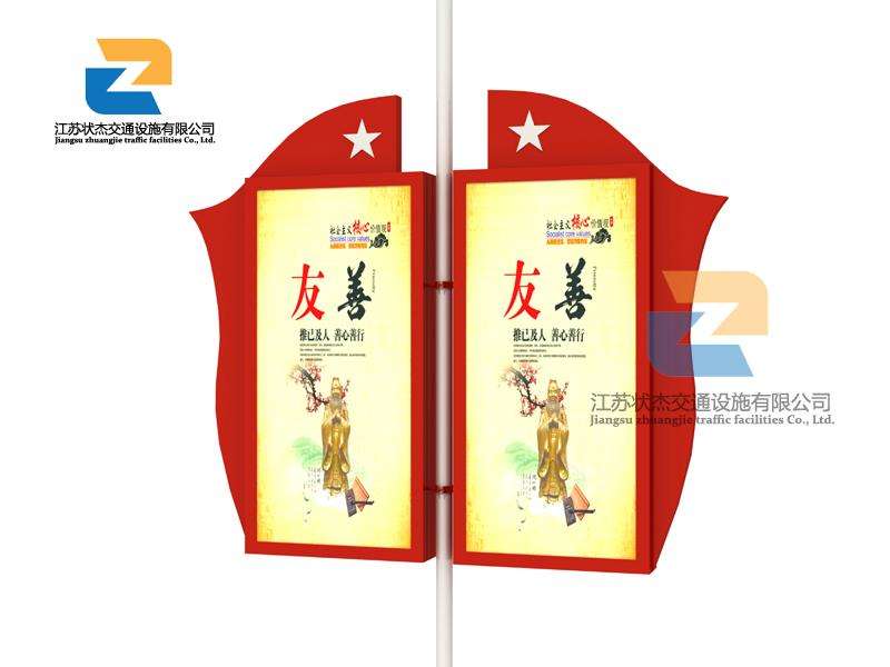 狀杰科技是路燈燈桿燈箱、路燈燈桿廣告牌、指路牌燈箱、宣傳欄、智能公交站臺(tái)、垃圾分類亭、核心價(jià)值觀景觀小品的專業(yè)設(shè)計(jì)制作廠家。擁有 13 年城市公共設(shè)施產(chǎn)品制作經(jīng)驗(yàn)以及完整、科學(xué)的質(zhì)量管理體系。產(chǎn)品的尺寸、材質(zhì)、顏色均可根據(jù)需求自由定制,支持來圖加工定制。
